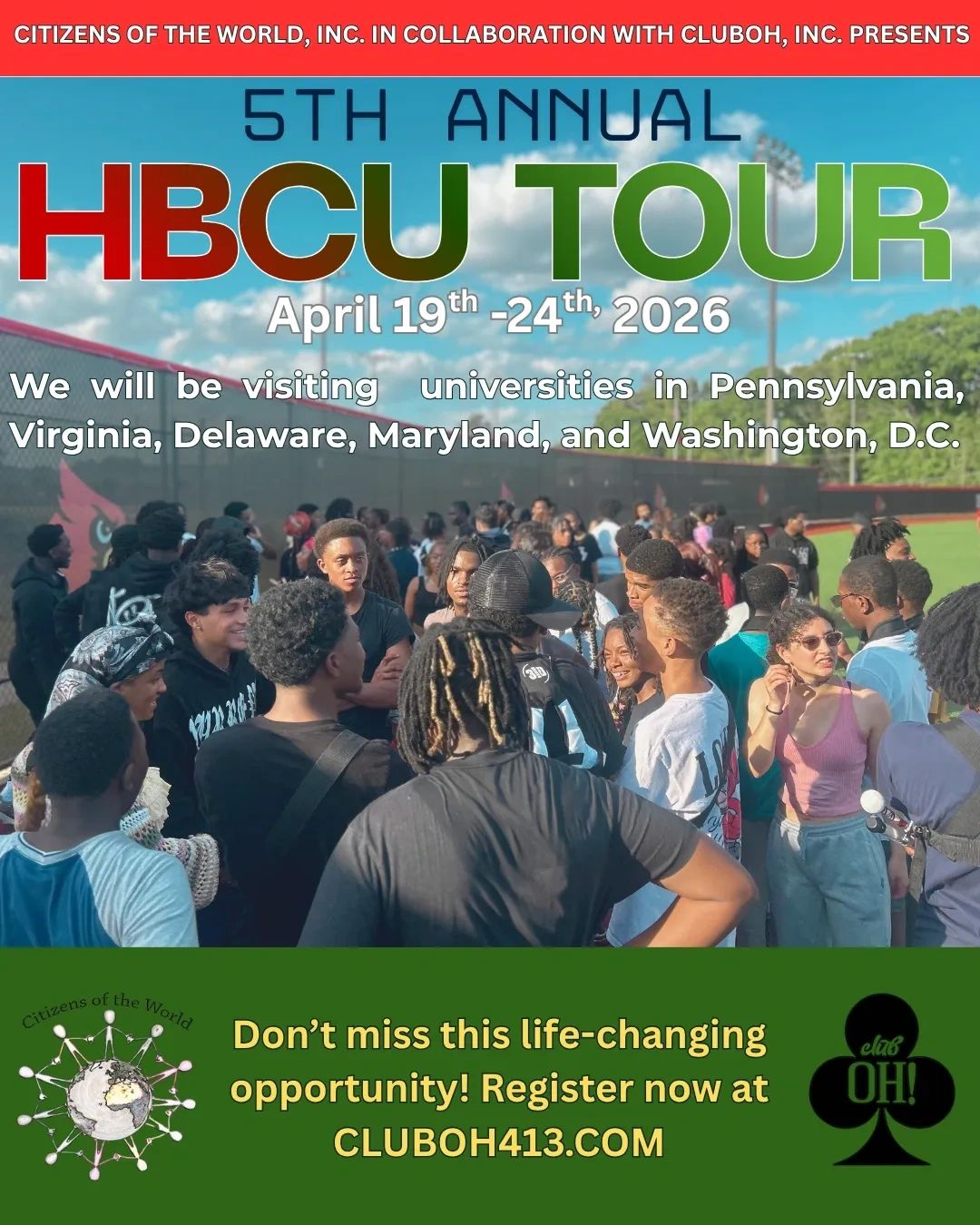 Your donation will help support a youth to attend our HBCU Tour 2026! Every dollar counts and will make a difference.